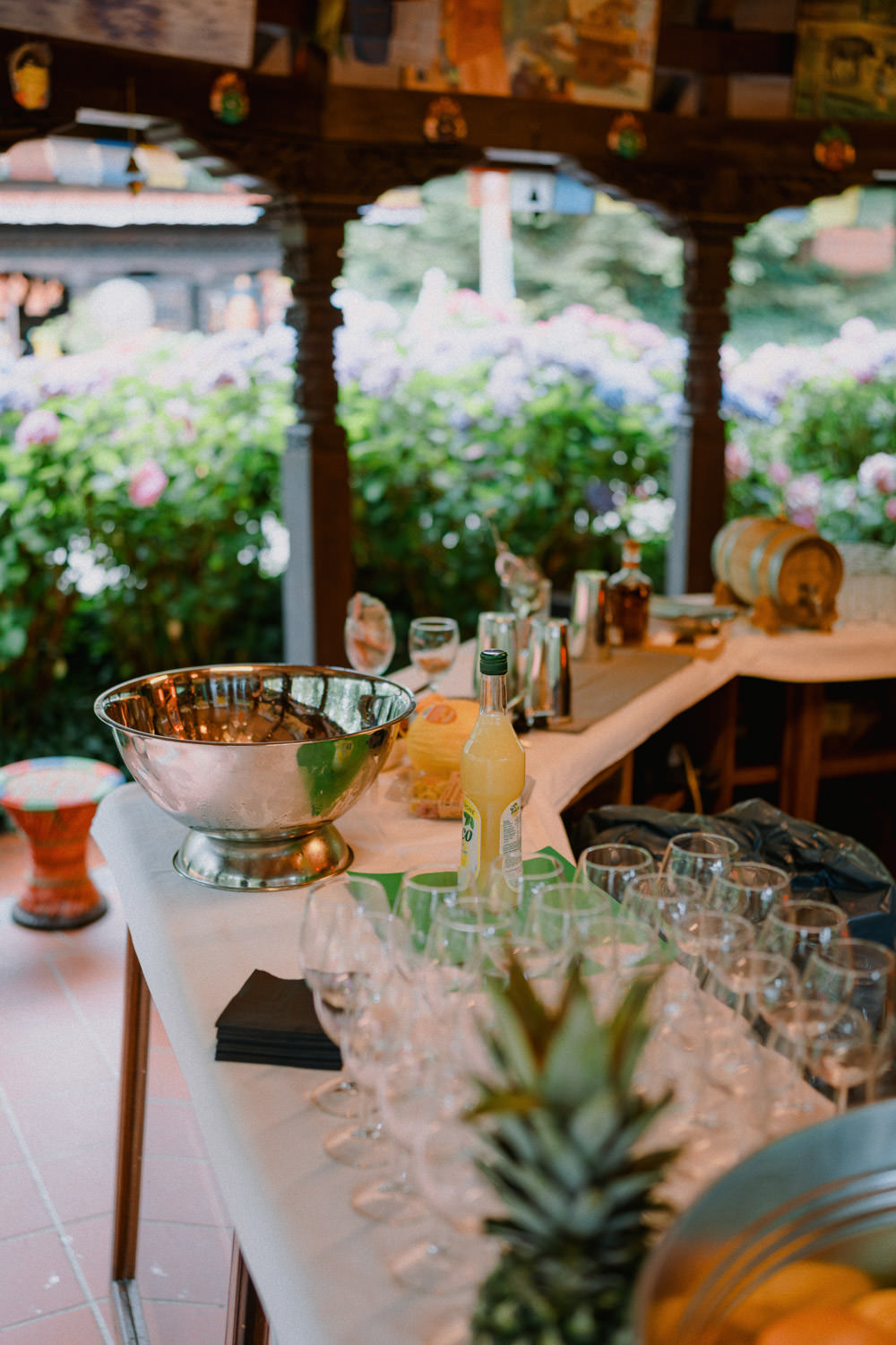 Diese Hochzeit im Nepal Himalaya Park in Wiesent war etwas Besonderes. Eine freie Trauung vor dem asiatisch inspirierten Pavillon, ein aufwändig gestaltetes Gelände und ein Paar, das Wert auf Ästhetik und Stimmung legt – ohne dabei steif oder durchgeplant zu wirken. Die Location ist riesig, bietet zahlreiche Hintergründe für Paarbilder und wirkt dabei nie überladen. Fotografiert habe ich digital und analog, der gesamte Tag spielte sich vor Ort im Park ab – vom Shooting über die Trauung bis hin zur Party unter offenen Dächern. Besonders schön: die durchdachte Deko, feine Sonnenschirme, individuell bedruckte Regenschirme für alle Gäste. Alles hatte Stil, aber nichts war zu viel.