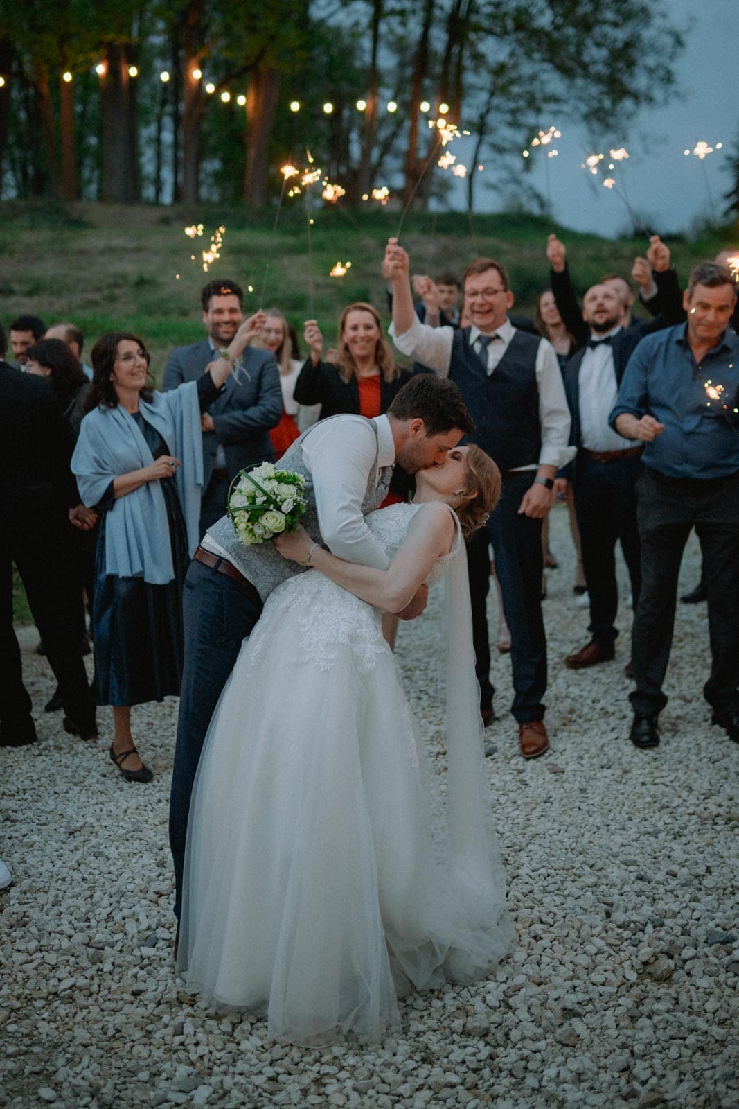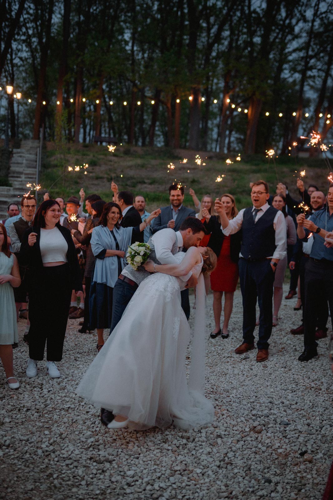 Auf die Hochzeit von Kathi & Mario habe ich mich aus zwei Gründen besonders gefreut: Erstens waren die beiden für mich als Hochzeitsfotografen ein absolutes Traumpaar! Sie hatten richtig Bock auf meine Bilder und waren bei jeder Idee sofort dabei. Das ist am Ende auch das Rezept für gute Hochzeitsfotos. Zweitens wollte ich schon immer mal im Schloss Pirkensee eine Hochzeit begleiten. Ich habe dort bereits vier Musikvideos gedreht und ich war jeden mal ein großer Fan der Location. Auch am großen Tag von Kathi und Mario sollte das nicht anders sein: Der Park vor dem Schloss eignet sich hervorragend für das Shooting am Vormittag, die Kapelle hat einen genialen Charme für eine Trauung und der Saal ist sowieso unglaublich schön. Eine Woche vor der Kirchlichen Hochzeit von Kathi & Mario durfte ich die beiden bereits beim Standesamt begleiten und somit waren wir bei der Hochzeit schon bestens vertraut. Mein Tageshighlight: Die Wunderkerzen am Abend. Ein romantischer und unvergesslicher Moment.