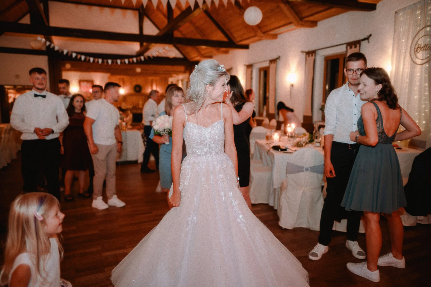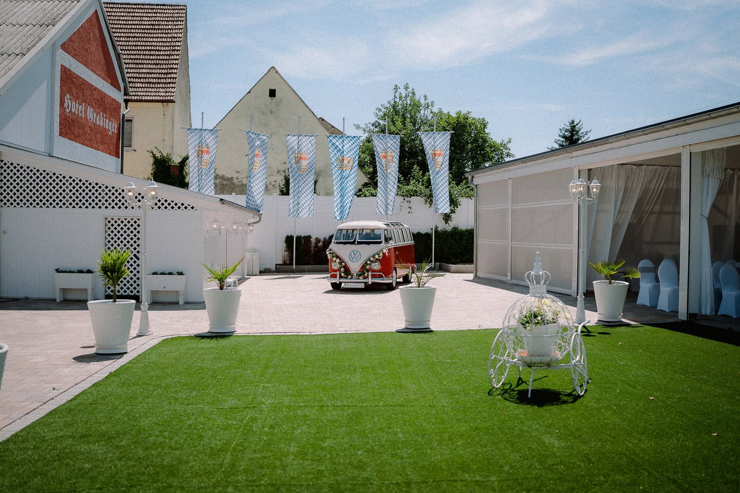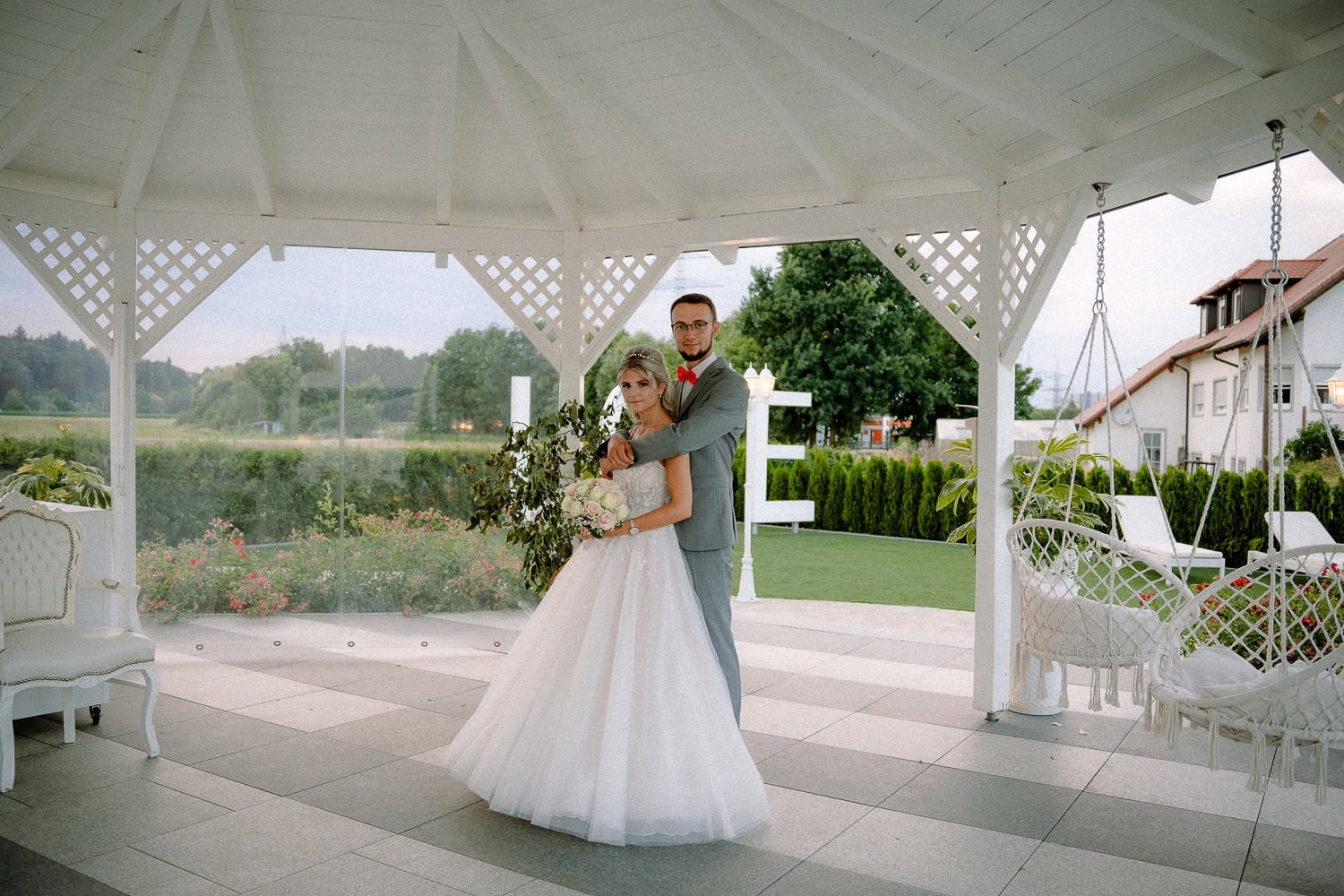 Hochzeiten im Hotel Grabinger in Büchelkühn in Schwandorf sind jedes Mal wieder eine feine Sache. Mindestens einmal im Jahr darf ich hier fotografieren, für mich als Schwandorfer jedes Mal ein Heimspiel. Jessica & Alex habe ich auf einer Hochzeitsmesse kennengelernt und fand sie gleich sympathisch. Wir haben uns gemeinsam für das ganze Programm entschieden: Kennenlernshooting, Hochzeitsvideo und die Ganztagesreportage am Hochzeitstag, für mich als Fotograf also das gesamte Paket. Das Engagement Shooting hat großen Spaß gemacht, ein guter Vorgeschmack auf den Hochzeitstag im Juli 2023. Wir haben am Morgen mit dem Getting Ready begonnen, hatten einen First Look, das Paarshooting und die freie Trauung in der Trauhalla. Für die musikalische Begleitung über den gesamten Tag war der Froschhaxn Express zuständig. Ich kenne die Jungs schon seit Jahren, habe sie schon etliche Male fotografiert und hab mich total gefreut, wieder mit ihnen unterwegs zu sein. Das beste an der Hochzeit der Beiden war aber ohne Frage das Sonnenuntergangsshooting. Für mich als Hochzeitsfotografen gibt es kein besseres Licht als die untergehende Sonne und der Garten im Hotel Grabinger ist da bestens geeignet. Das weiche Licht, die schönen Farben und die ausgelassene Stimmung beim Paar am Abend, perfekt. Die gesamte Hochzeit von Jessica & Alex war eine total runde Veranstaltung und ich hatte einen super angenehmen Tag. Wenn ihr noch mehr sehen möchtet, dann könnt ihr das bei meinen Lovestories.