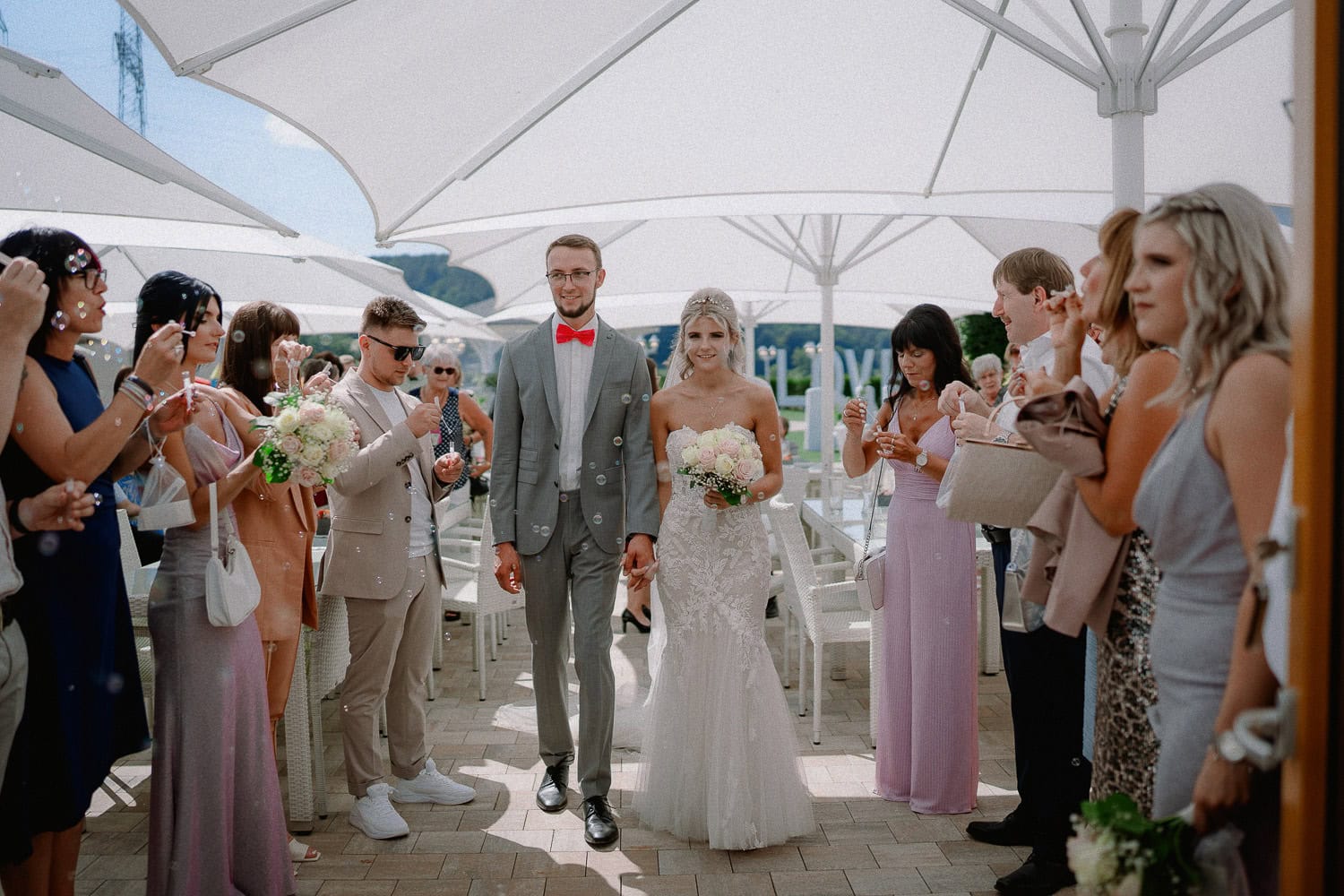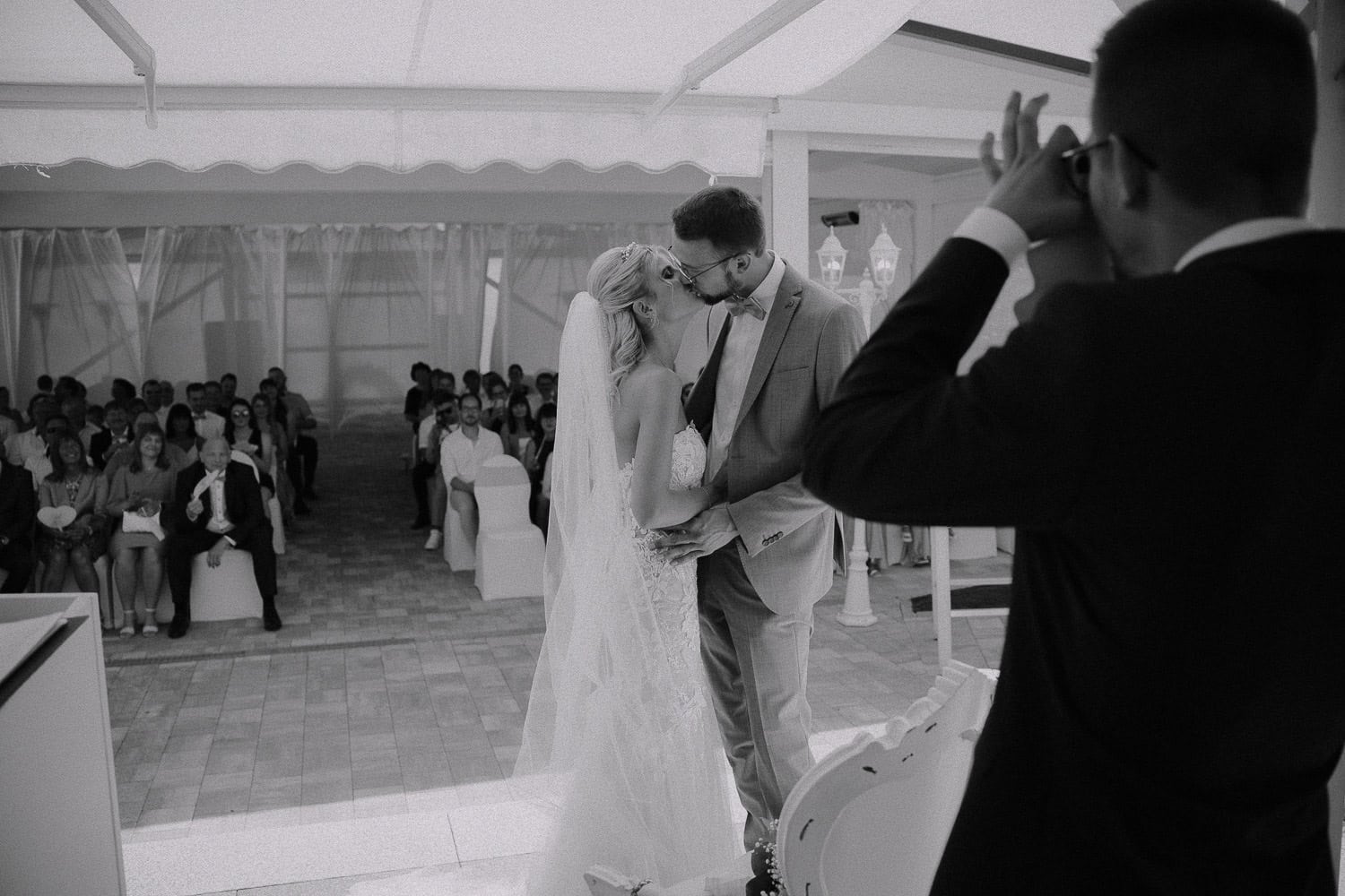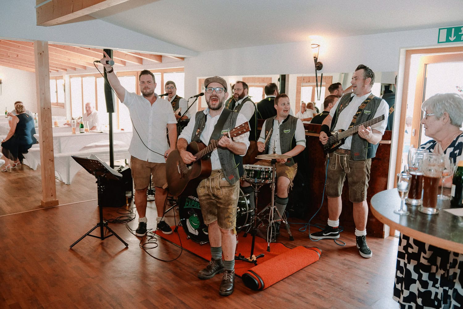 Hochzeiten im Hotel Grabinger in Büchelkühn in Schwandorf sind jedes Mal wieder eine feine Sache. Mindestens einmal im Jahr darf ich hier fotografieren, für mich als Schwandorfer jedes Mal ein Heimspiel. Jessica & Alex habe ich auf einer Hochzeitsmesse kennengelernt und fand sie gleich sympathisch. Wir haben uns gemeinsam für das ganze Programm entschieden: Kennenlernshooting, Hochzeitsvideo und die Ganztagesreportage am Hochzeitstag, für mich als Fotograf also das gesamte Paket. Das Engagement Shooting hat großen Spaß gemacht, ein guter Vorgeschmack auf den Hochzeitstag im Juli 2023. Wir haben am Morgen mit dem Getting Ready begonnen, hatten einen First Look, das Paarshooting und die freie Trauung in der Trauhalla. Für die musikalische Begleitung über den gesamten Tag war der Froschhaxn Express zuständig. Ich kenne die Jungs schon seit Jahren, habe sie schon etliche Male fotografiert und hab mich total gefreut, wieder mit ihnen unterwegs zu sein. Das beste an der Hochzeit der Beiden war aber ohne Frage das Sonnenuntergangsshooting. Für mich als Hochzeitsfotografen gibt es kein besseres Licht als die untergehende Sonne und der Garten im Hotel Grabinger ist da bestens geeignet. Das weiche Licht, die schönen Farben und die ausgelassene Stimmung beim Paar am Abend, perfekt. Die gesamte Hochzeit von Jessica & Alex war eine total runde Veranstaltung und ich hatte einen super angenehmen Tag. Wenn ihr noch mehr sehen möchtet, dann könnt ihr das bei meinen Lovestories.