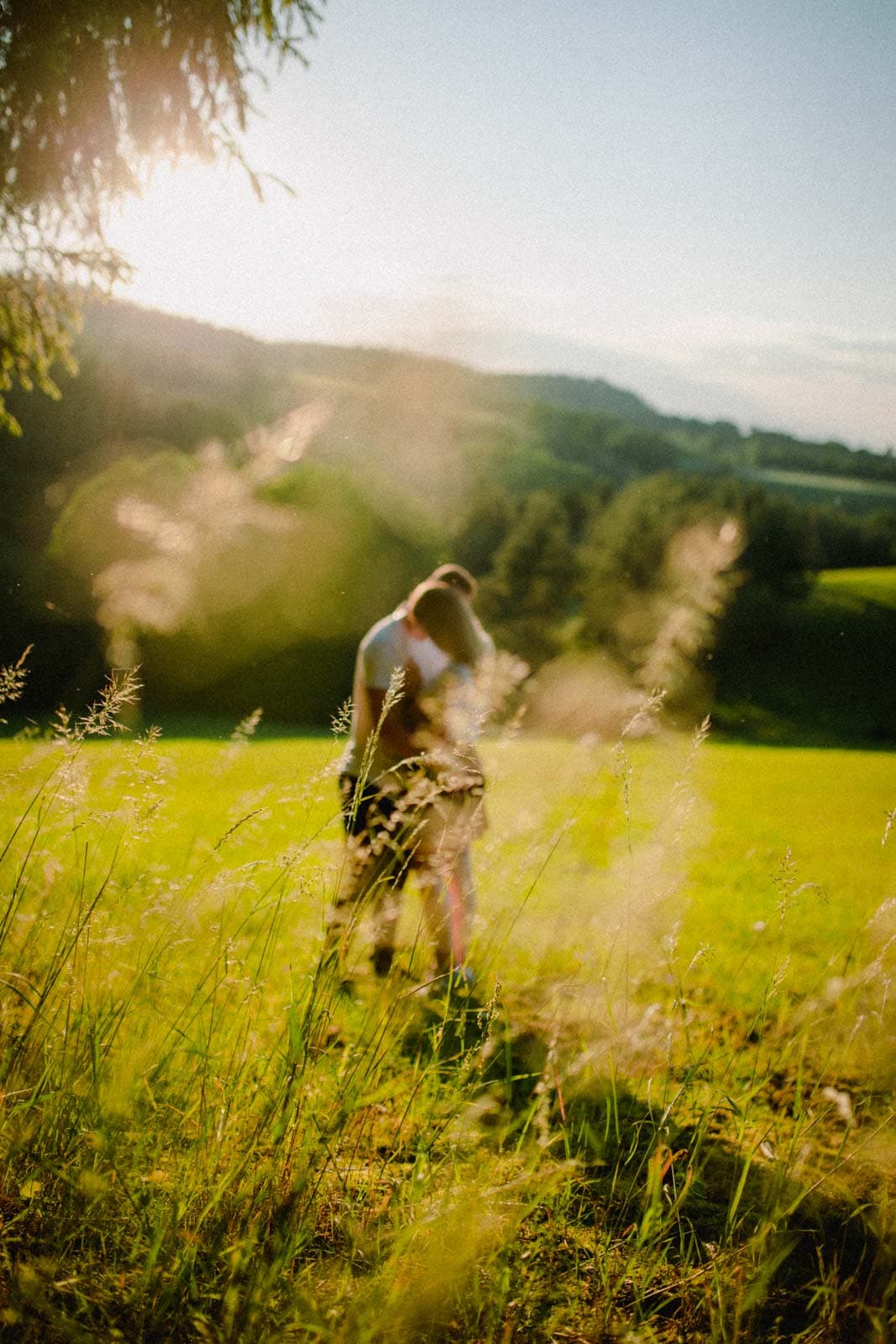 Das Paarshooting mit Tanja und Flo war ein ganz besonderes. Die beiden sind gute Freunde von mir und ich habe auch im Folgejahr ihre Hochzeit begleitet. Als Location haben wir uns eine Wiese im Raum Schwandorf gesucht. Nachdem ich kurz mit dem total lieben Besitzer gesprochen habe, konnte das Fotoshooting starten. Zu Beginn war es unfassbar warm, aber die Magie des Ortes hat uns sofort in ihren Bann gezogen. Mit dabei war ein weiterer sehr enger Freund, der mir auch als Second Shooter assistiert hat. Tatsächlich waren wir knapp zwei Stunden vor Ort und ich habe am Ende über 150 Bilder abgegeben. Inzwischen sind die beiden Fotografen-Kollegen von mir, das Paarshooting war also ein voller Erfolg.